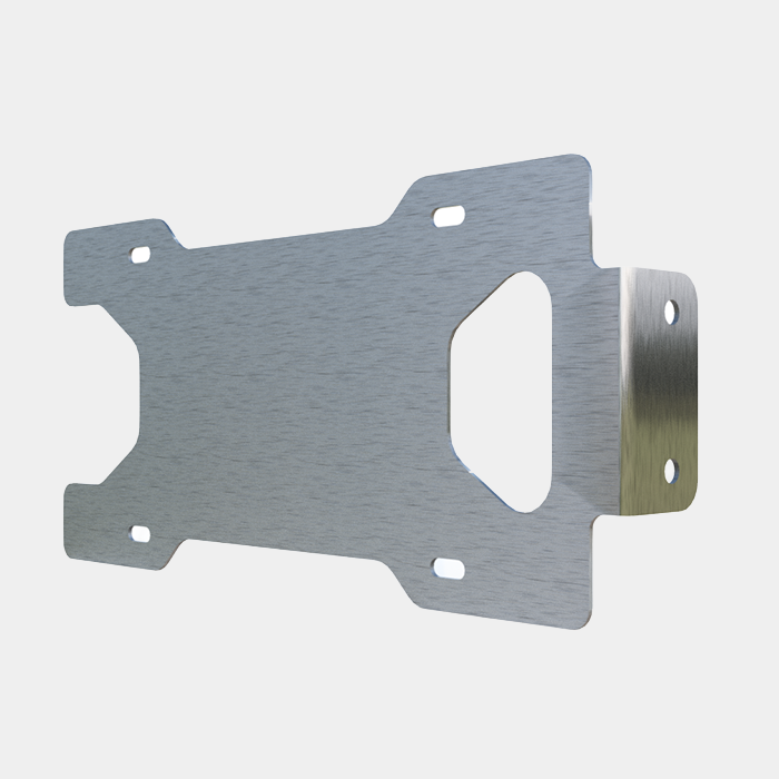 Porta placas fabricado en acero inoxidable, diseñado para montarse directamente sobre la burrera sin alterar su diseño ni estética.