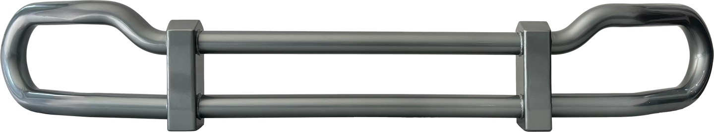 Tubo con diámetro estructural total de 3.000” con tornillería automotriz grado 5. El diseño generativo en las curvas permite distribuir eficientemente la fuerza de impacto hacia los laterales del vehículo. Compatible con el sistema de radar del camión.